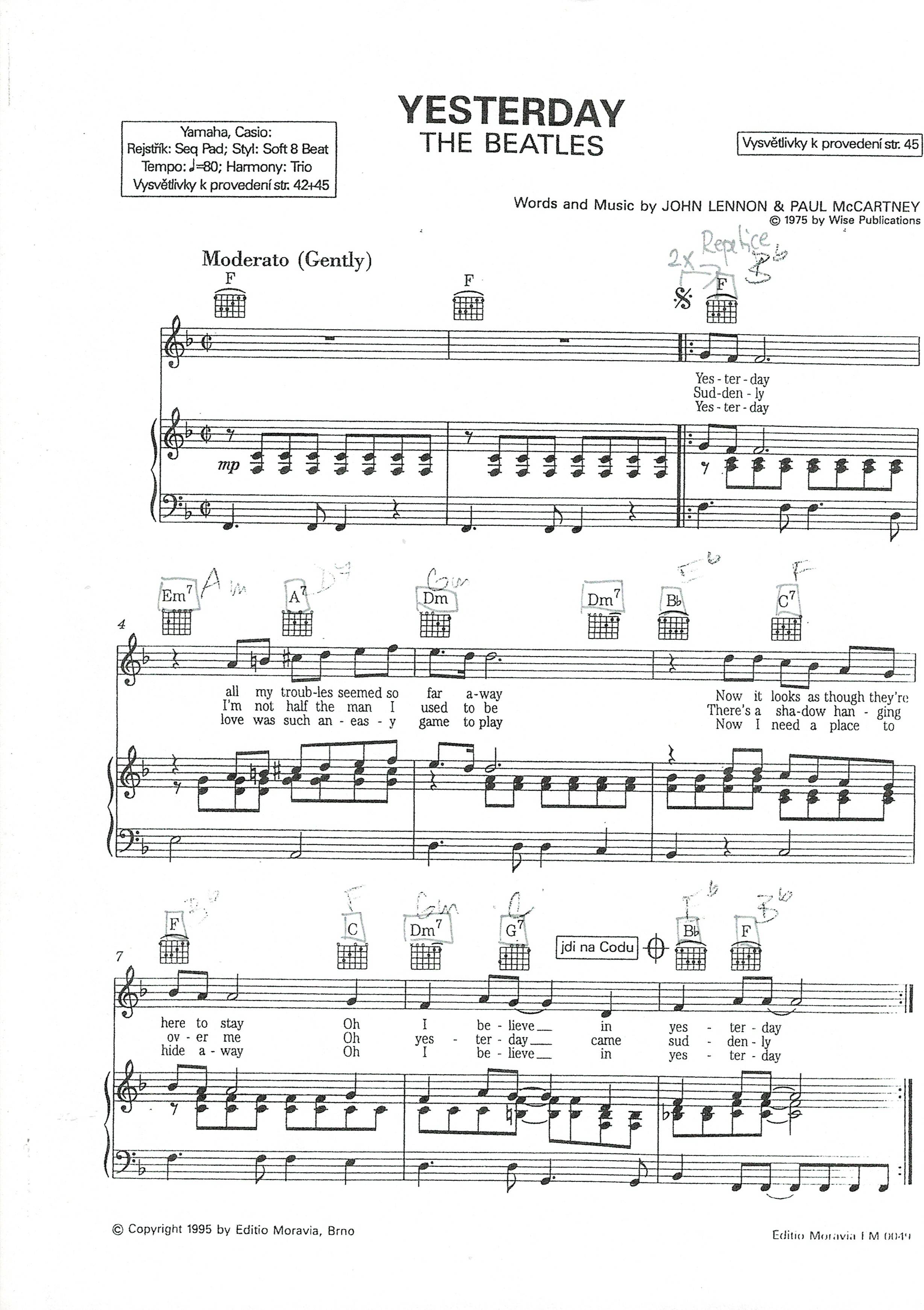 Lásko má já stůňu - akordické značky